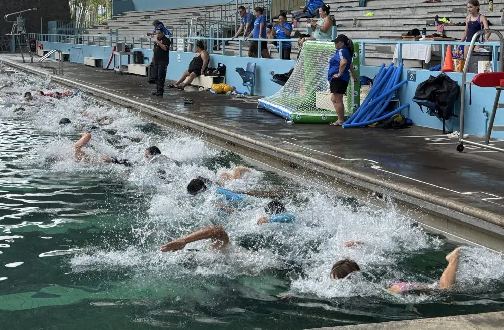 During the event, which aimed to introduce children to water safety and swimming, over 100 keiki participated in aquatic activities including swimming fundamentals, water polo, and diving basics, culminating in friendly swim races.